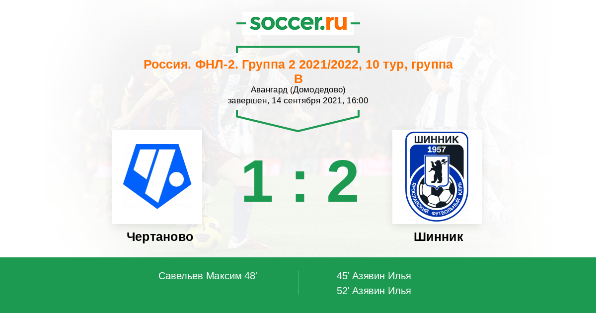 Протокол матча Чертаново против Шинник