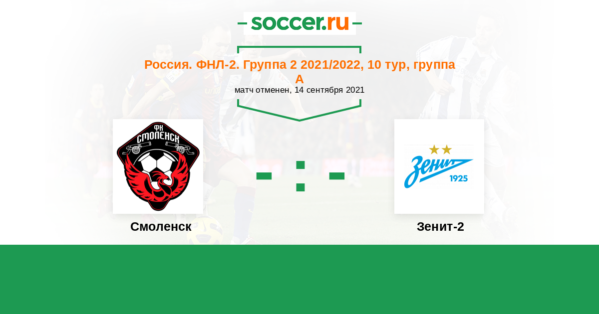 Россия. Вторая лига. Группа 2 15.06.2021 Смоленск Логотип футбольный клуб Смоленск 1:3 Логотип футбольный клуб Зенит-2 (Санкт-Петербург) Зенит-2