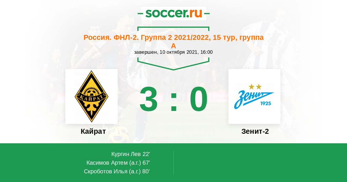 Протокол матча Кайрат против Зенит-2