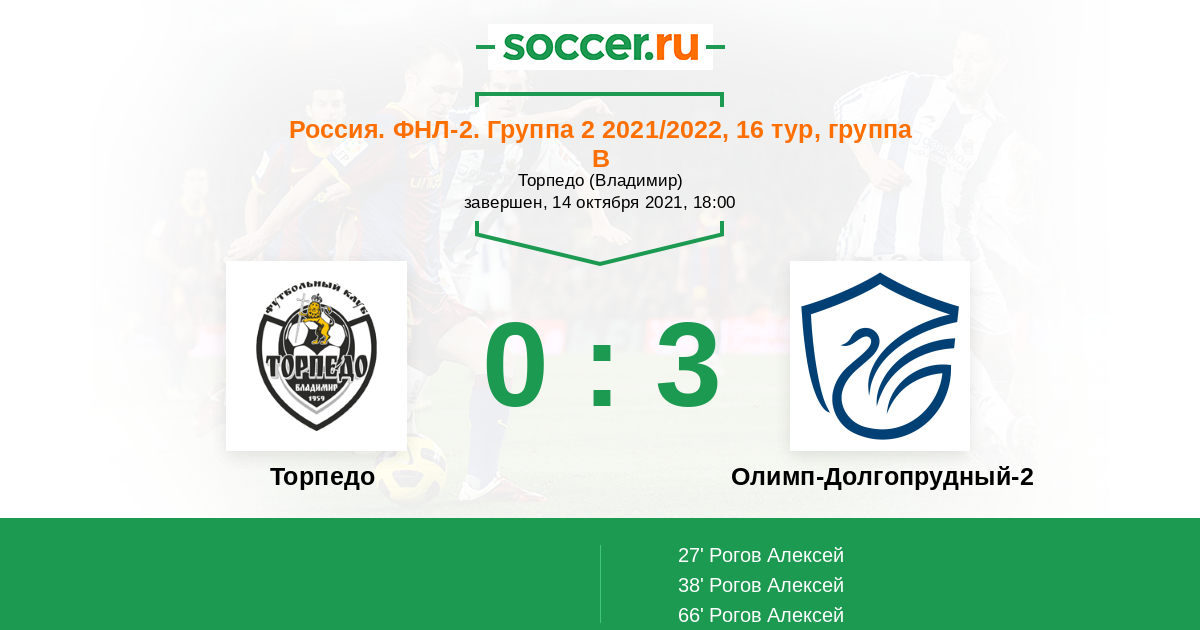 Протокол матча Торпедо против Олимп-Долгопрудный-2
