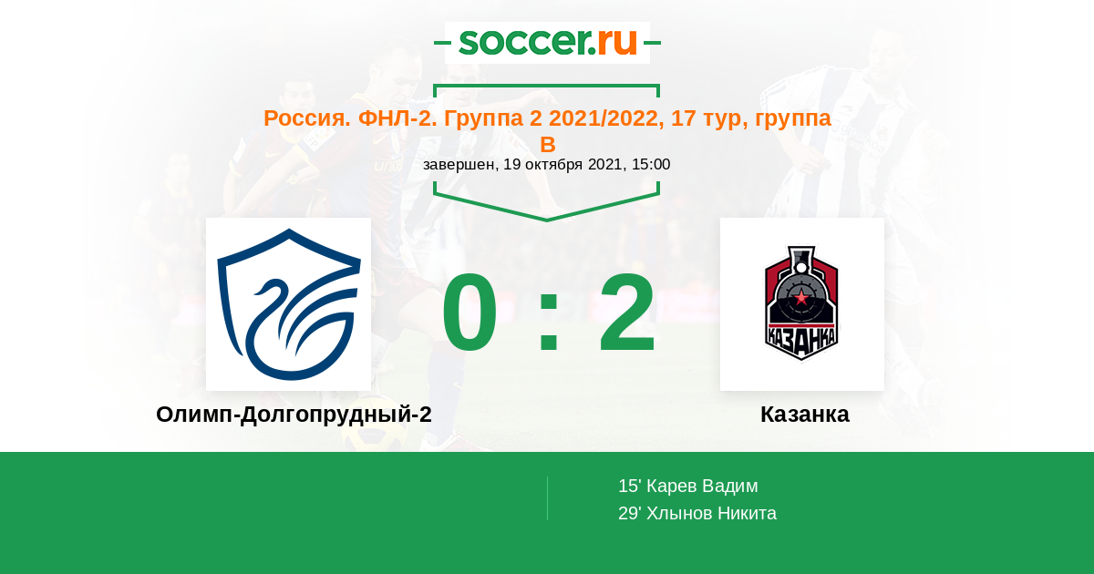 Протокол матча Олимп-Долгопрудный-2 против Казанка