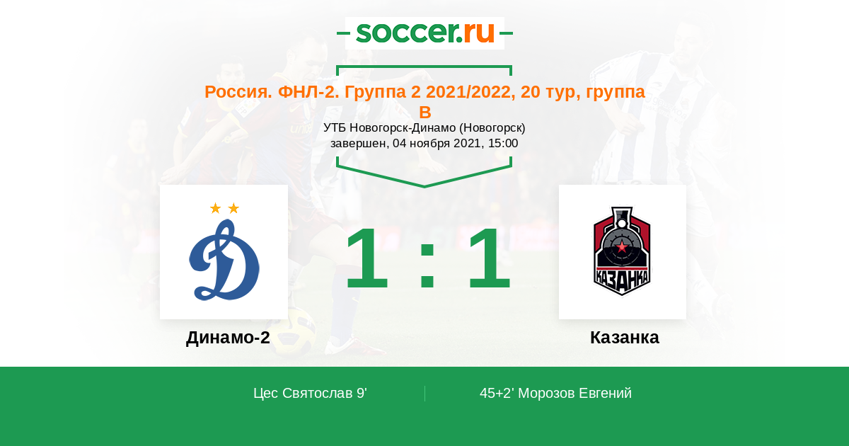 Протокол матча Динамо-2 против Казанка