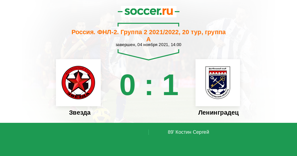 Протокол матча Звезда против Ленинградец