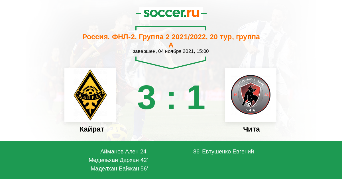Протокол матча Кайрат против Чита