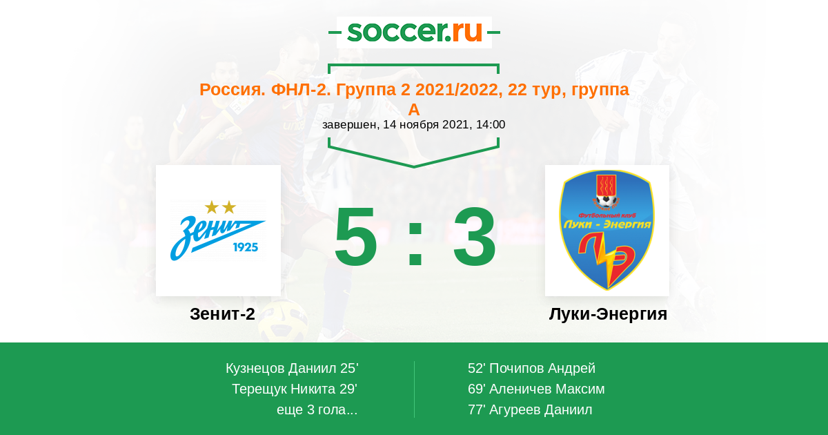 Протокол матча Зенит-2 против Луки-Энергия