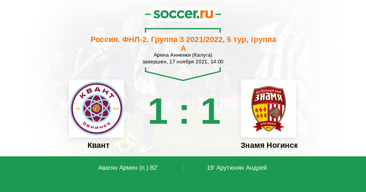 Протокол матча Квант против Знамя Ногинск