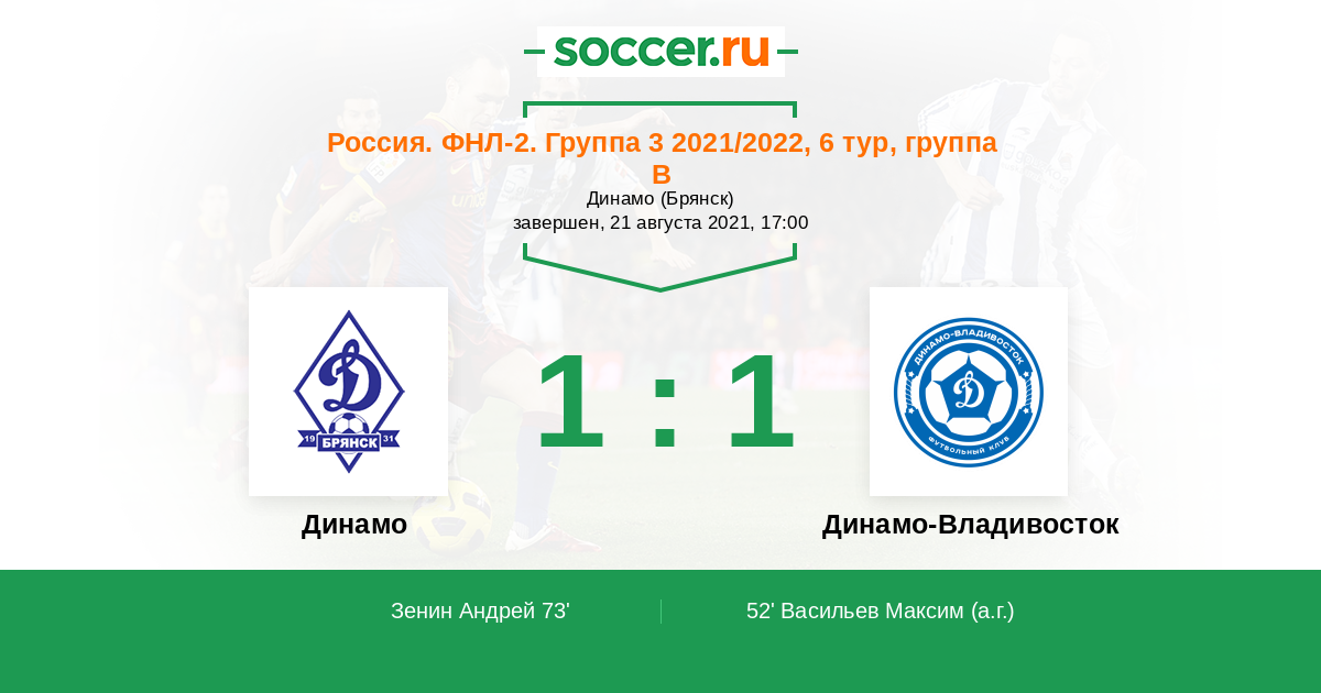 Протокол матча Динамо Брянск против Динамо Владивосток