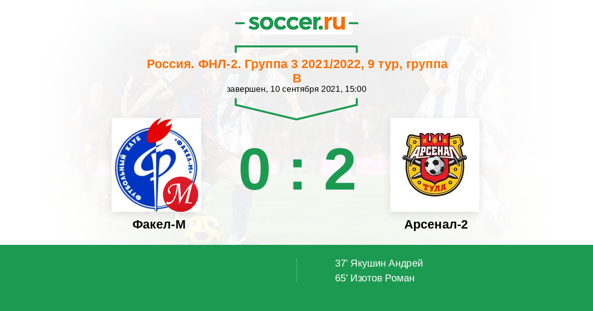 Протокол матча Факел-М против Арсенал-2