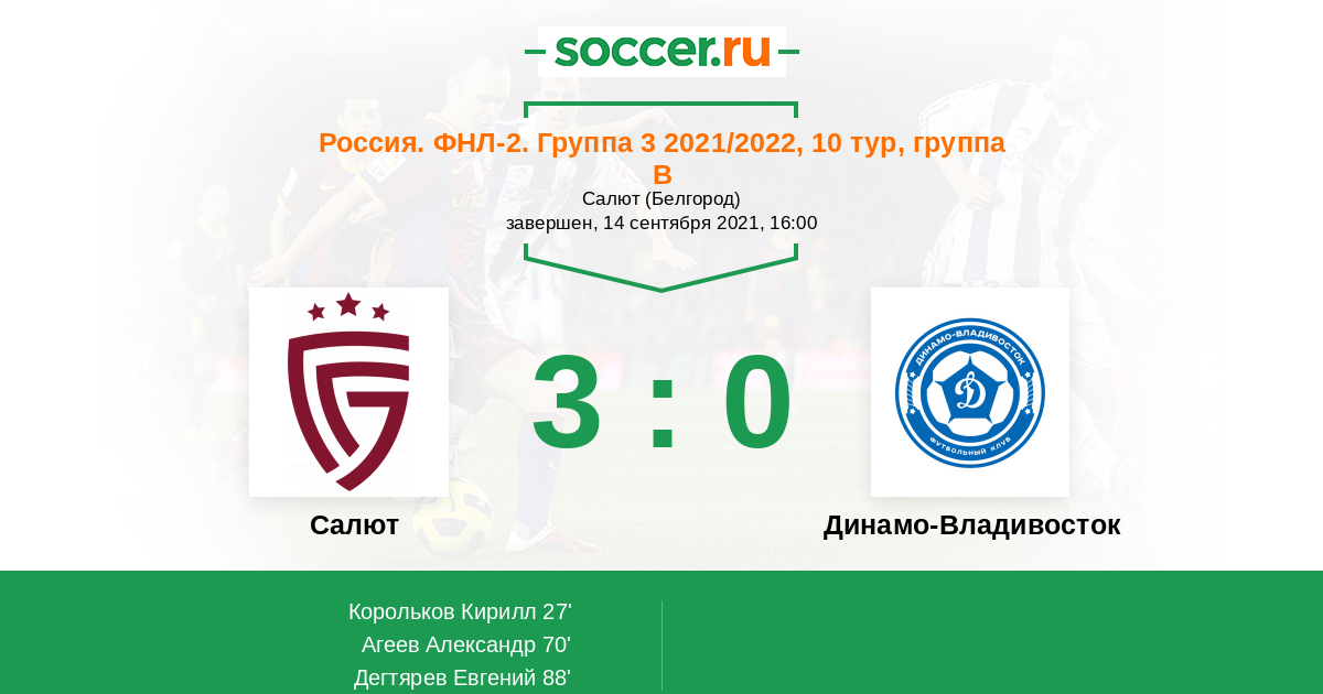 Протокол матча Салют против Динамо Владивосток