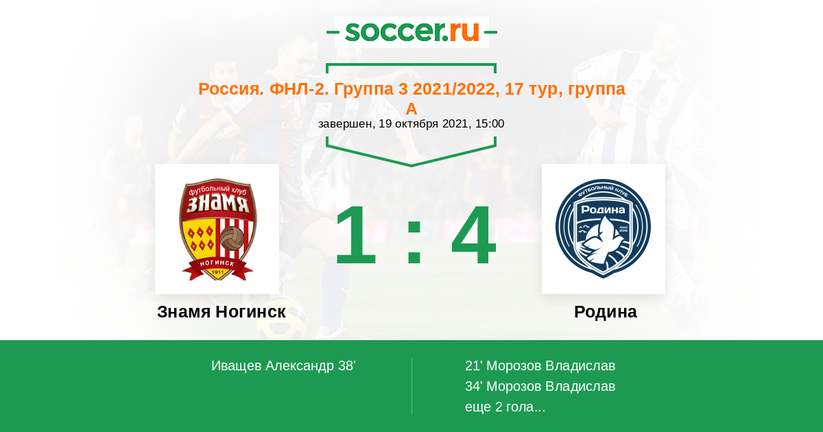 Протокол матча Знамя Ногинск против Родина