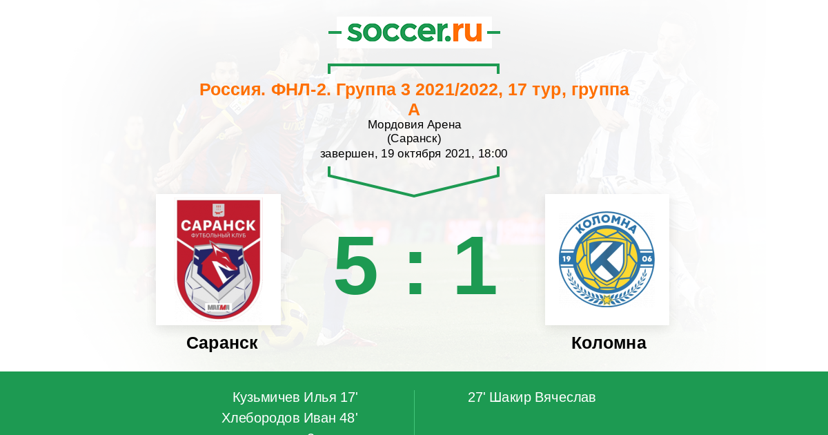 Протокол матча Саранск против Коломна