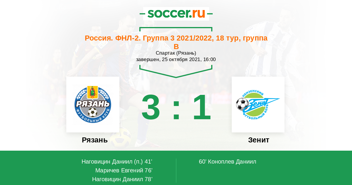 Протокол матча Рязань против Зенит