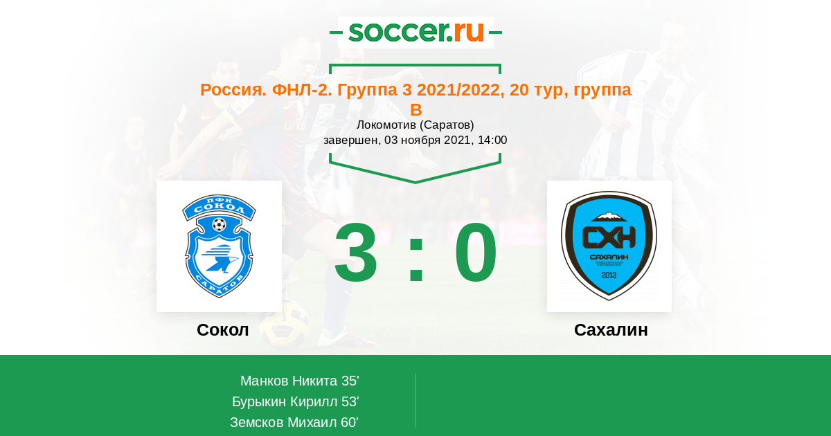 Протокол матча Сокол против Сахалин