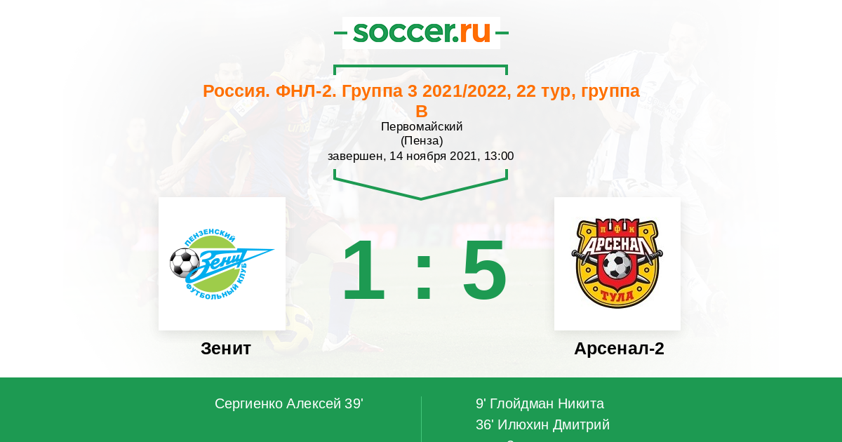 Протокол матча Зенит против Арсенал-2