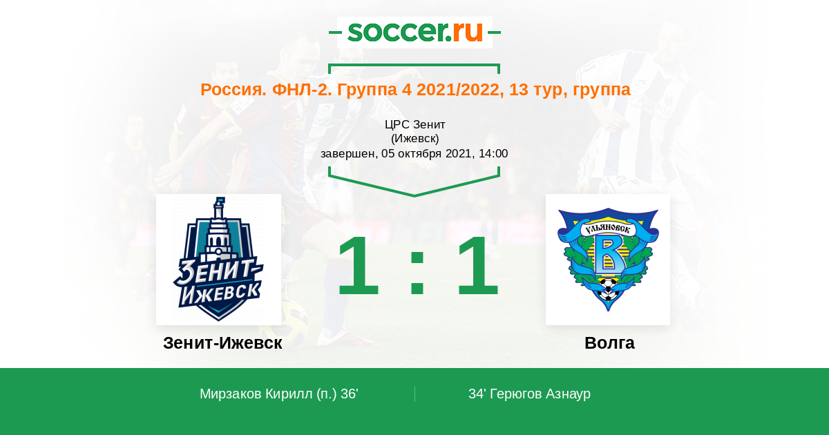 Протокол матча Зенит-Ижевск против Волга