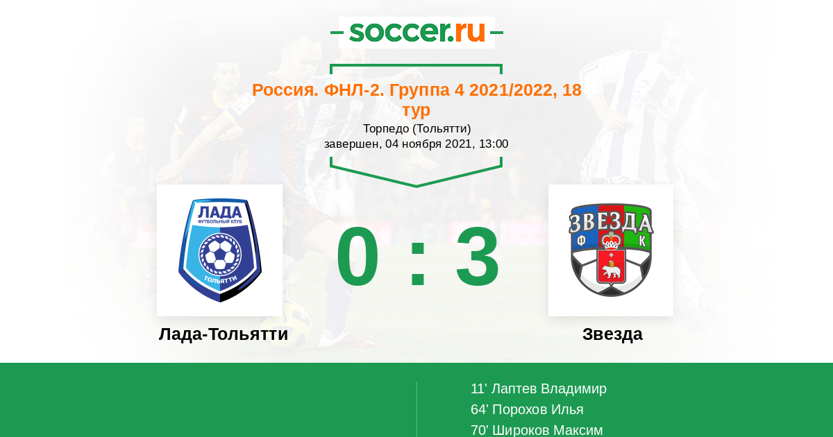 Протокол матча Лада-Тольятти против Звезда