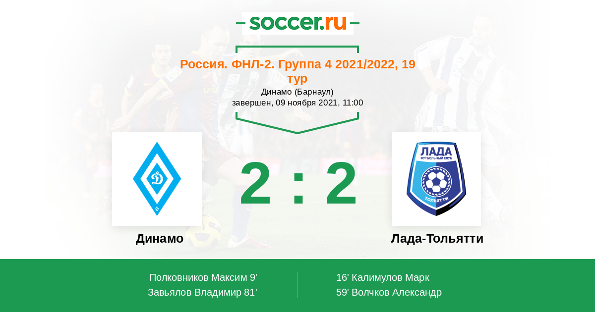 Протокол матча Динамо Барнаул против Лада-Тольятти