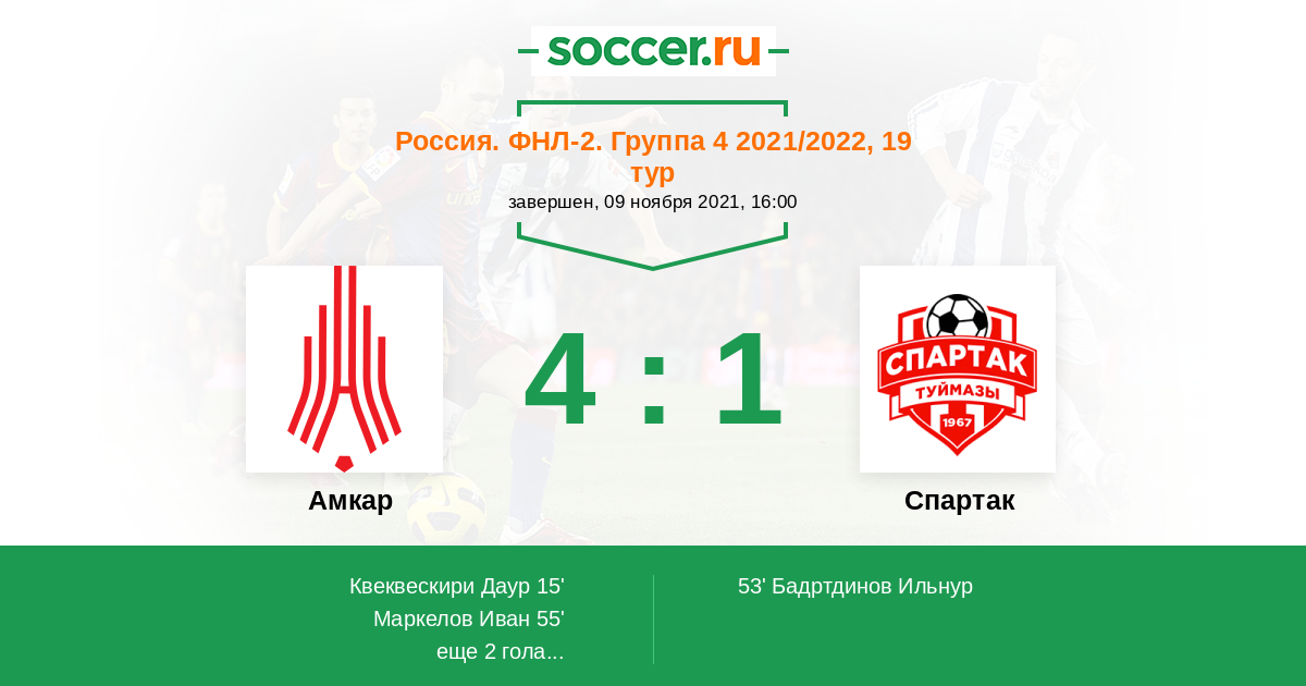 Протокол матча Амкар против Спартак