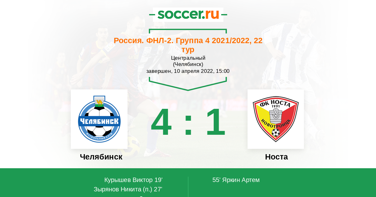 Протокол матча Челябинск против Носта