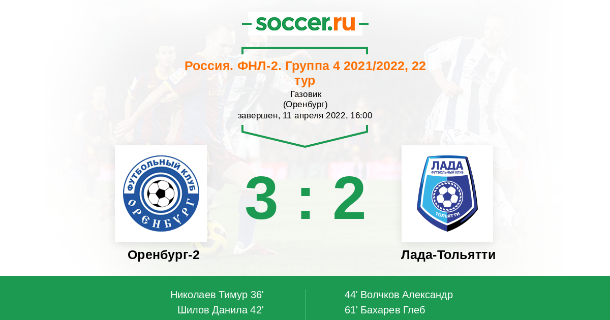 Протокол матча Оренбург-2 против Лада-Тольятти