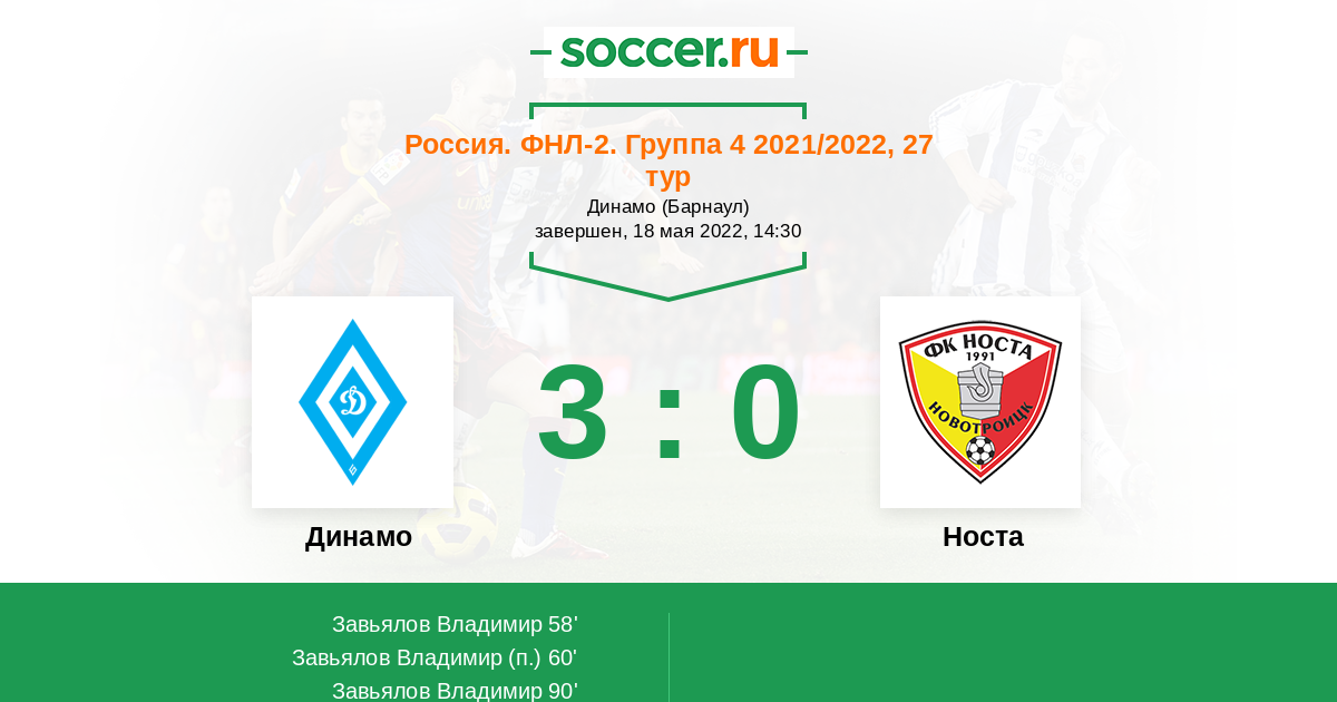 Протокол матча Динамо Барнаул против Носта