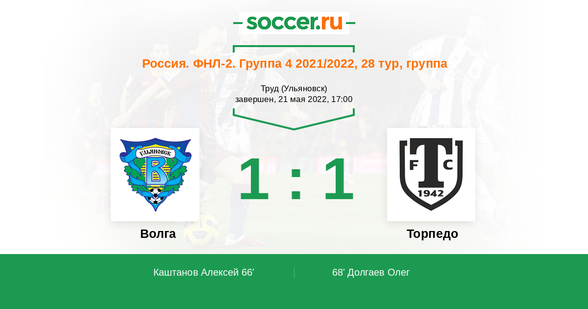 Протокол матча Волга против Торпедо