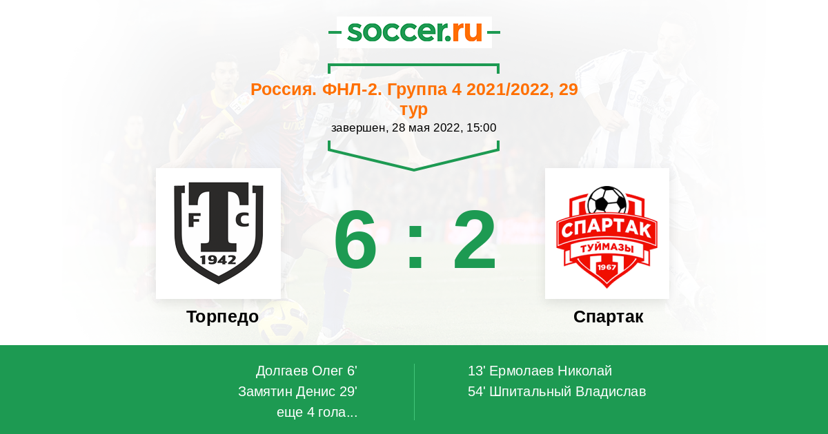 Протокол матча Торпедо против Спартак