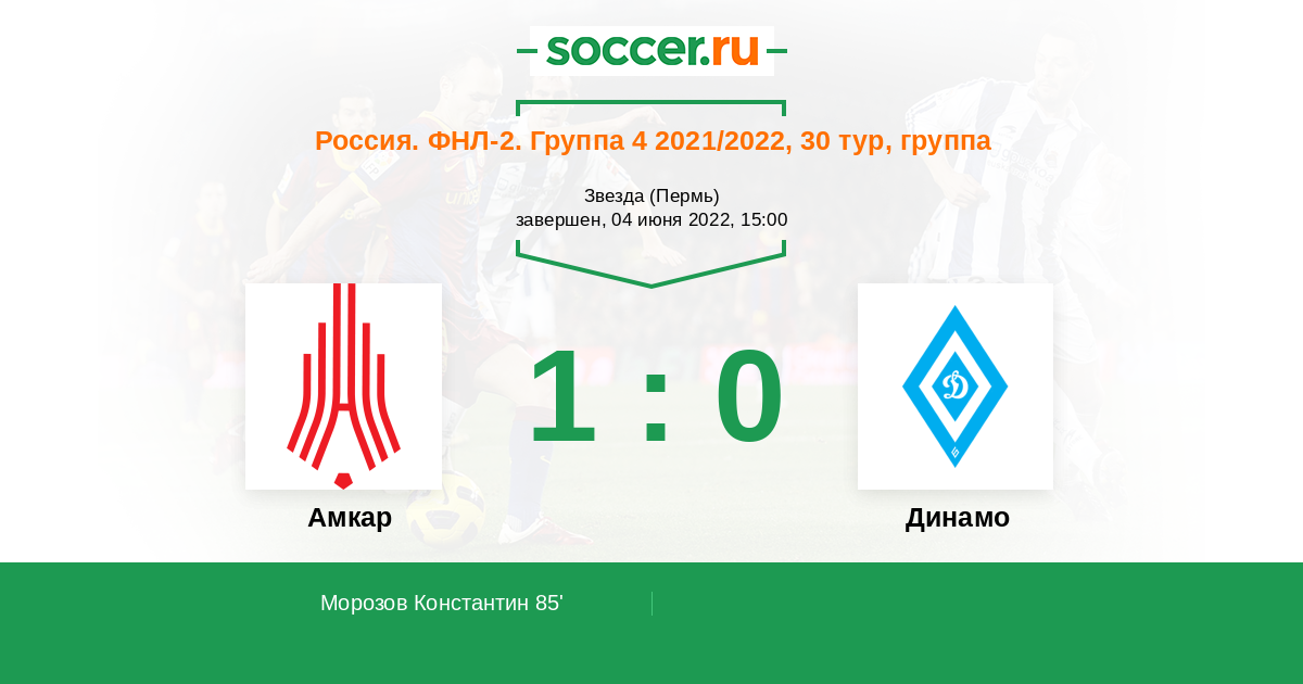 Протокол матча Амкар против Динамо Барнаул