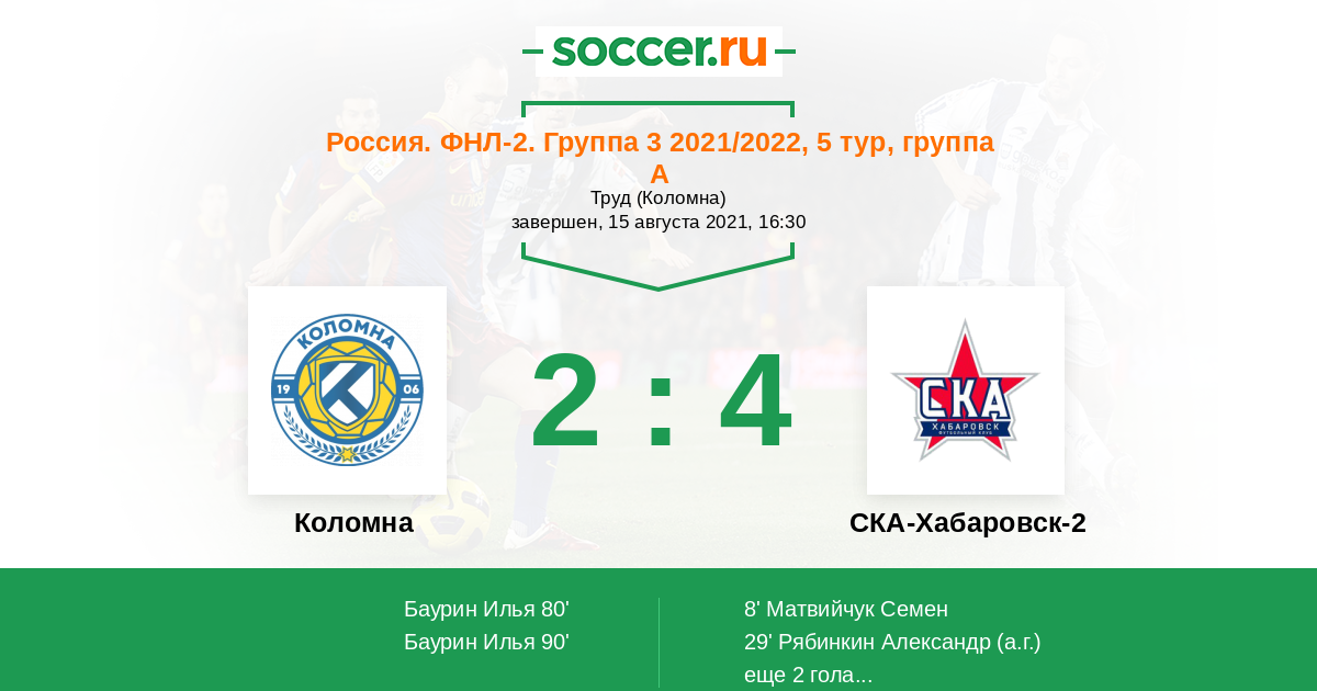 Протокол матча Коломна против СКА-Хабаровск-2