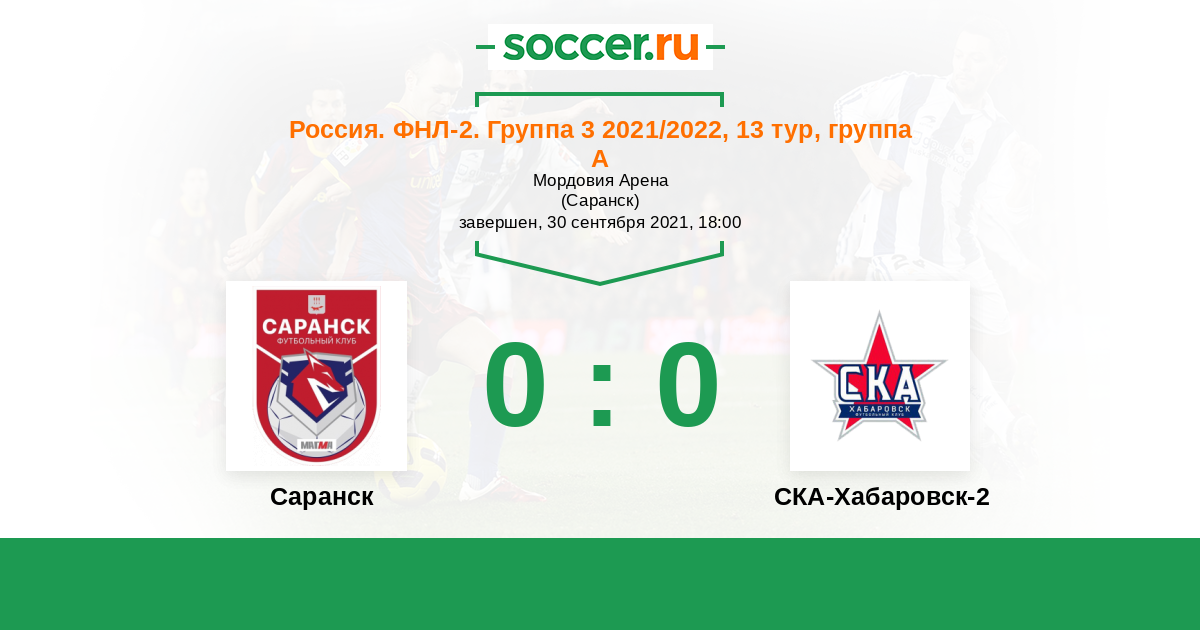Протокол матча Саранск против СКА-Хабаровск-2