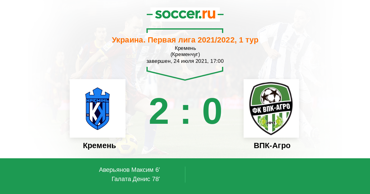 Протокол матча Кремень против ВПК-Агро