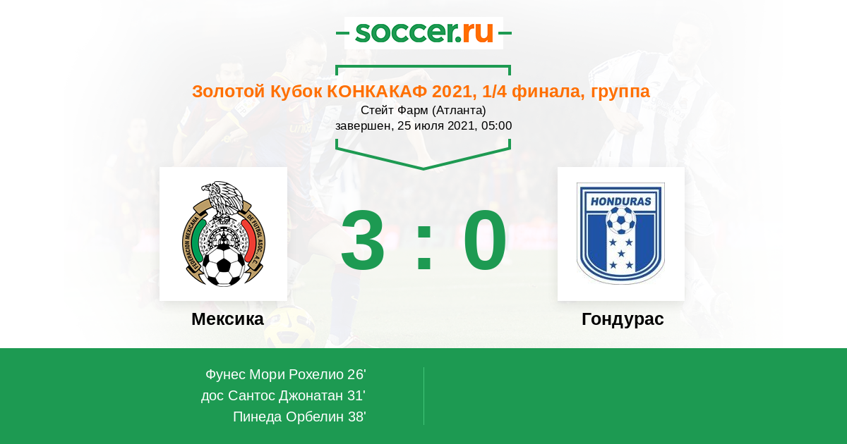 Протокол матча Мексика против Гондурас