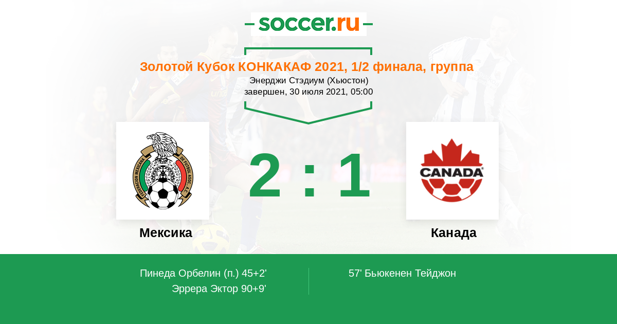 Протокол матча Мексика против Канада