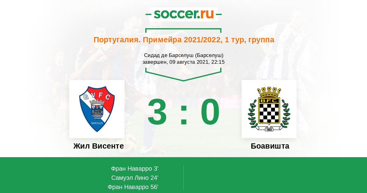 Протокол матча Жил Висенте против Боавишта