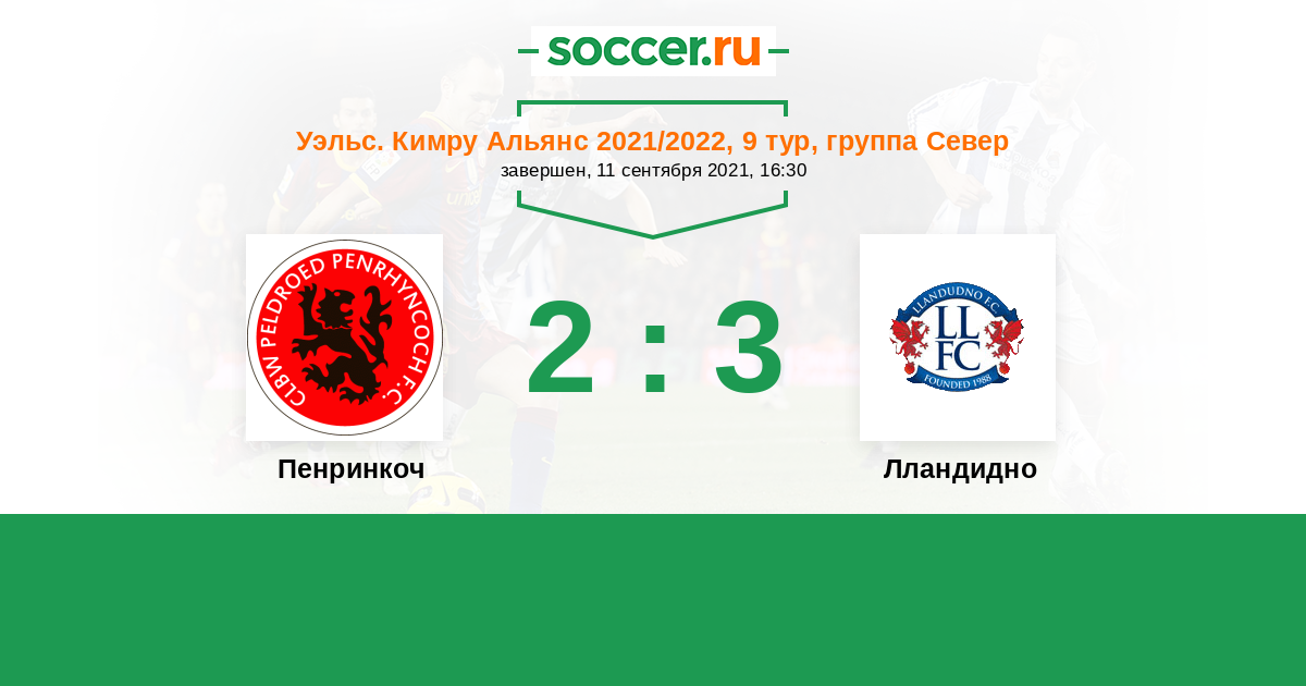 Уэльс. Кимру Альянс 24.09.2022 Пенринкоч Логотип футбольный клуб Пенринкоч 0:2 Логотип футбольный клуб Лландудно Лландудно