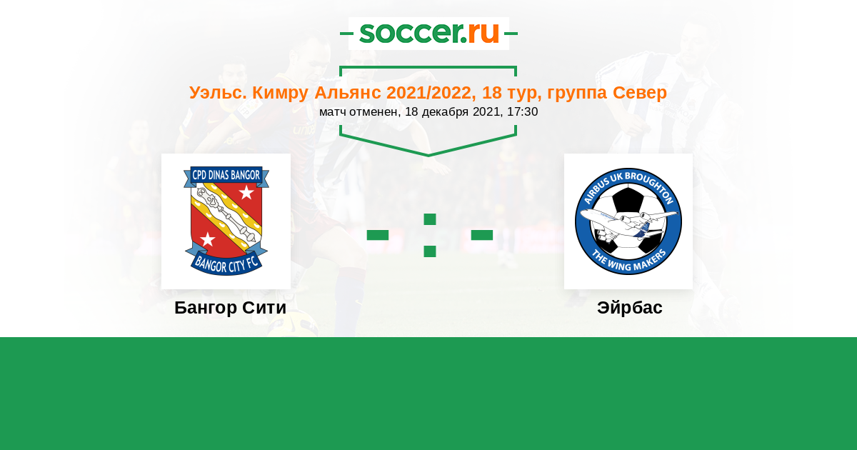 Уэльс. Премьер-Лига 17.12.2016 Бангор Сити Логотип футбольный клуб Бангор Сити 2:1 Логотип футбольный клуб Эйрбас (Броугтон) Эйрбас