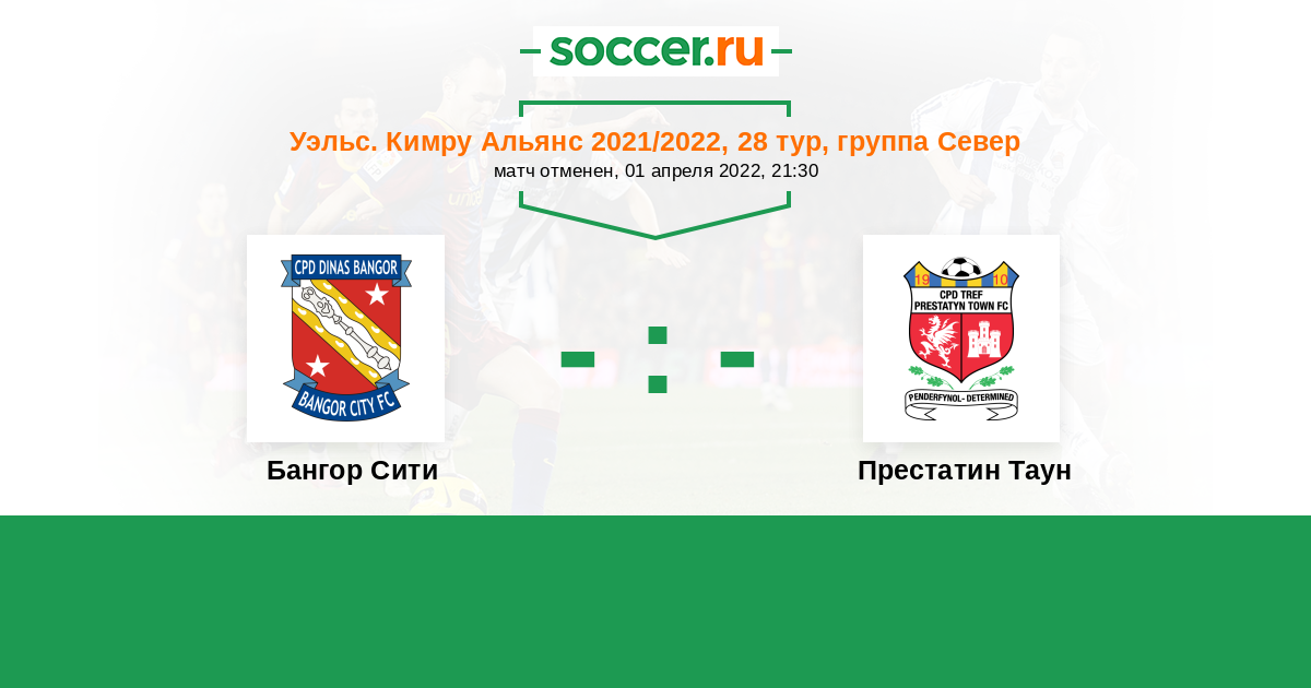 Уэльс. Кимру Альянс 22.03.2019 Престатин Таун Логотип футбольный клуб Престатин Таун 6:2 Логотип футбольный клуб Бангор Сити Бангор Сити