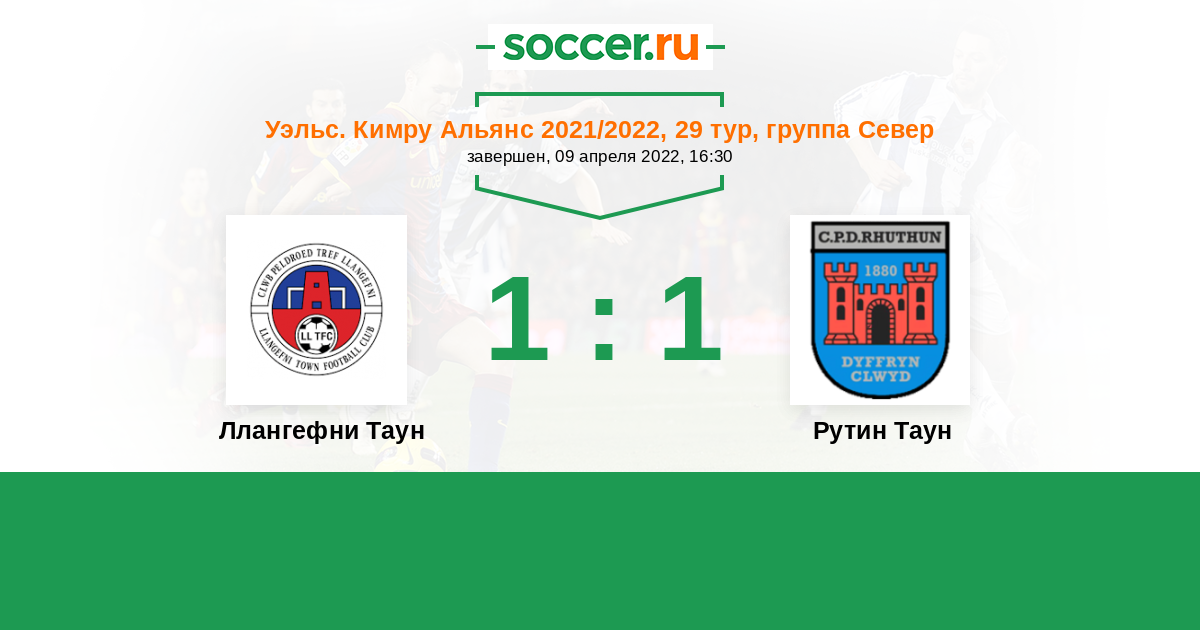 История матча Ллангефни Таун против Рутин Таун