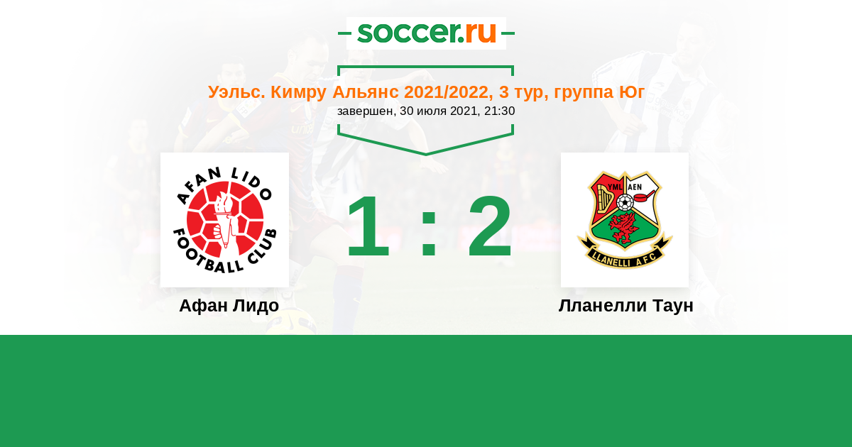 Уэльс. Премьер-Лига 19.08.2011 Лланелли Таун Логотип футбольный клуб Лланелли Таун 4:1 Логотип футбольный клуб Афан Лидо (Порт-Толбот) Афан Лидо