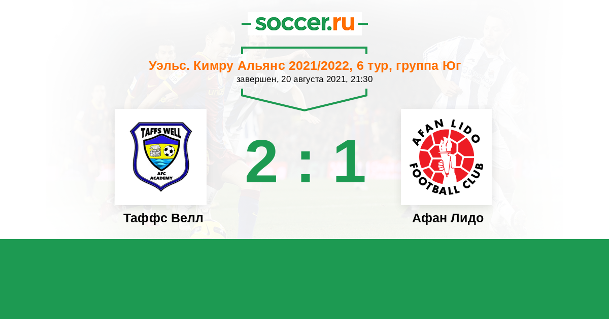 История матча Таффс Велл против Афан Лидо