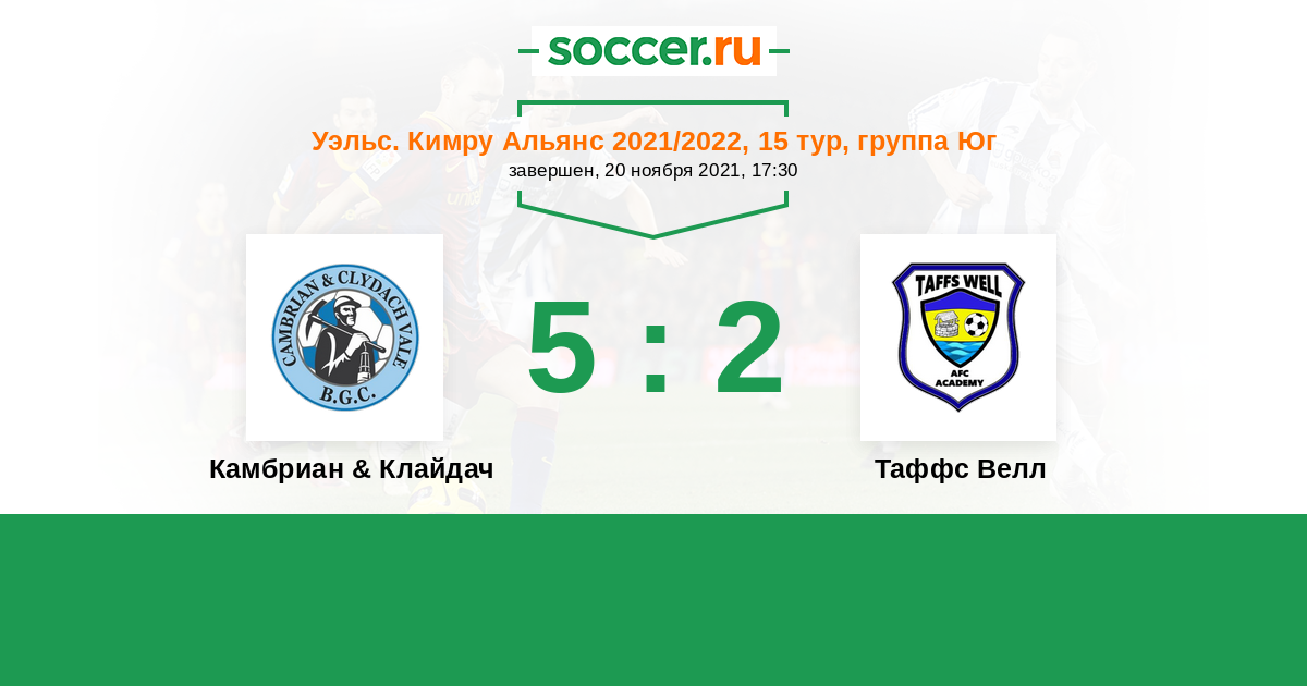 История матча Камбриан & Клайдач против Таффс Велл