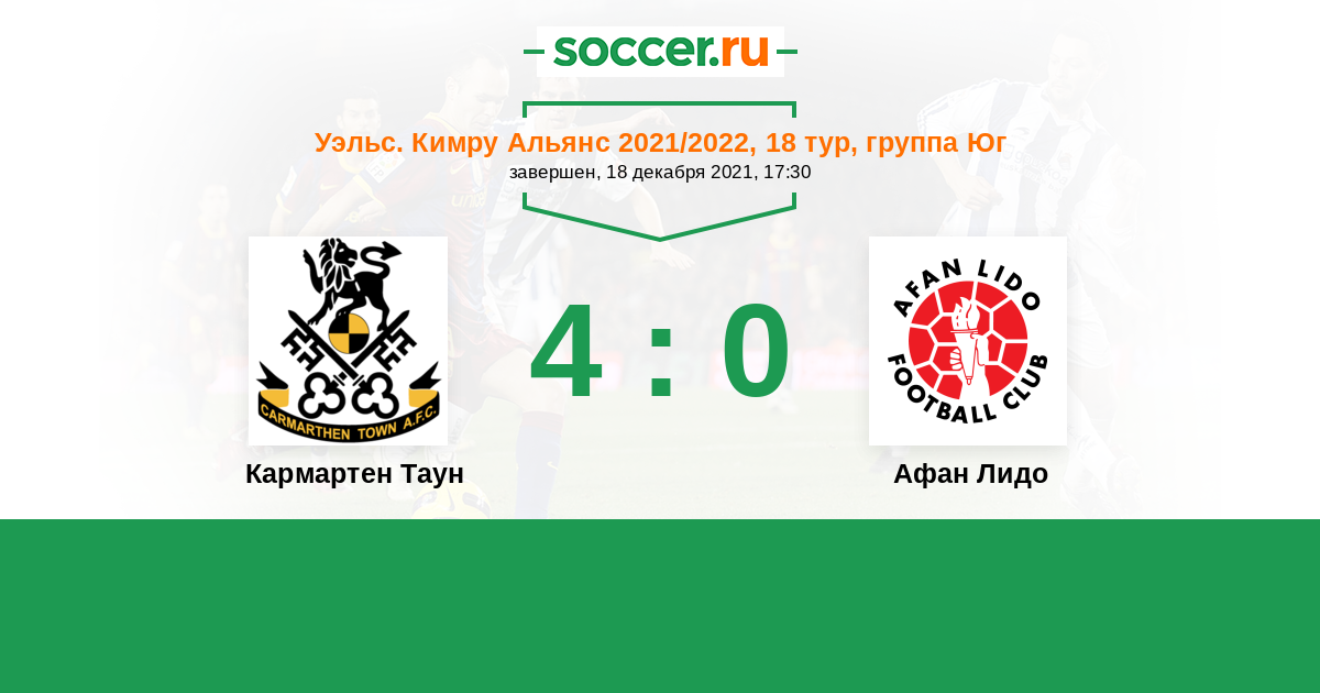 История матча Кармартен Таун против Афан Лидо