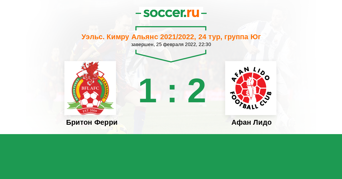 Уэльс. Кимру Альянс 27.08.2021 Афан Лидо Логотип футбольный клуб Афан Лидо (Порт-Толбот) 1:6 Логотип футбольный клуб Бритон Ферри Бритон Ферри