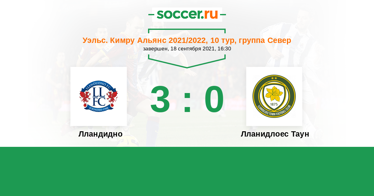 История матча Лландудно против Лланидлоес Таун