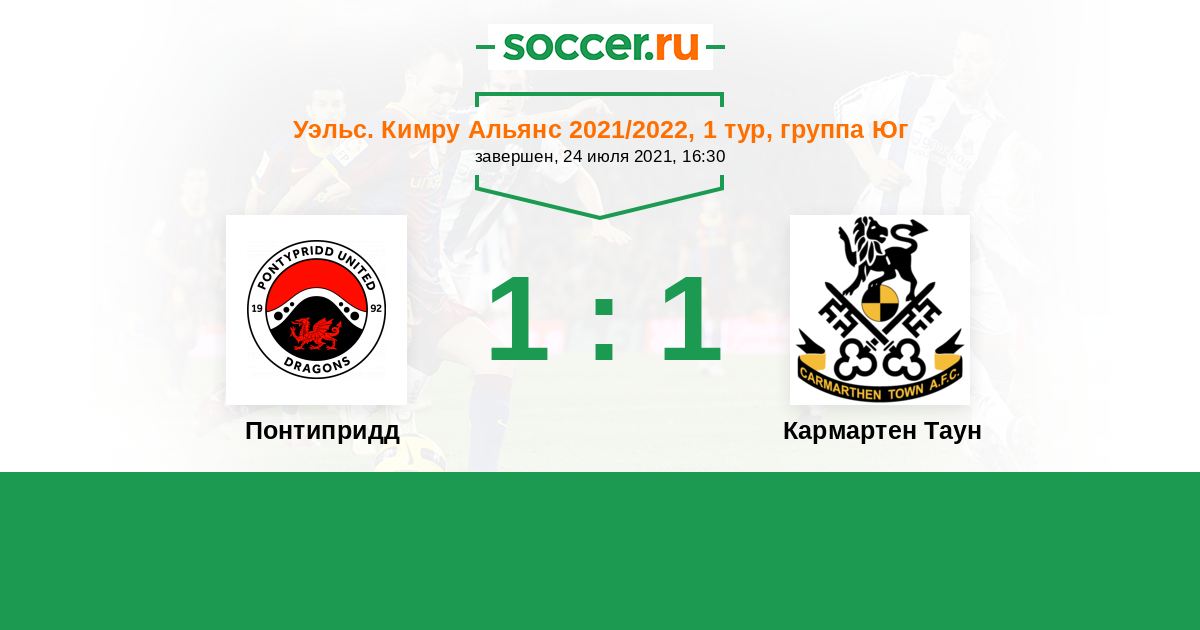 История матча Понтипридд против Кармартен Таун