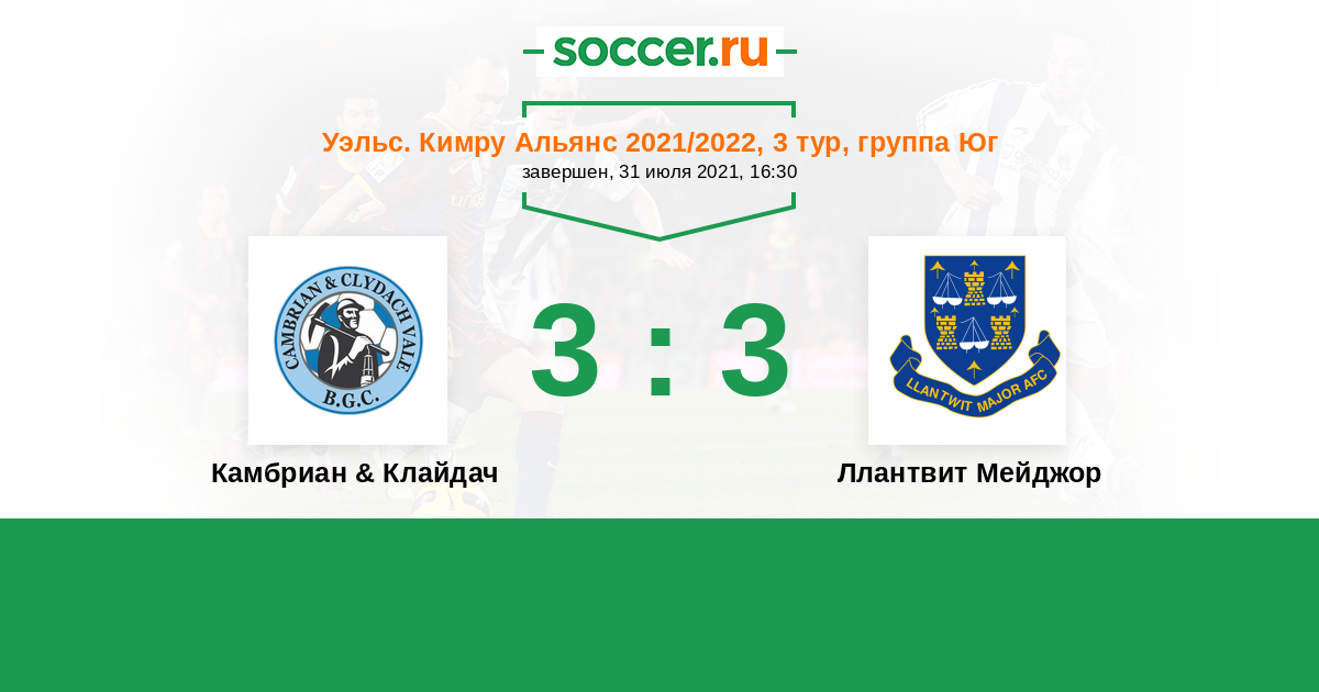 История матча Камбриан & Клайдач против Ллантвит Мейджор
