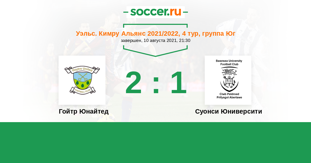 История матча Гойтр Юнайтед против Суонси Юниверсити