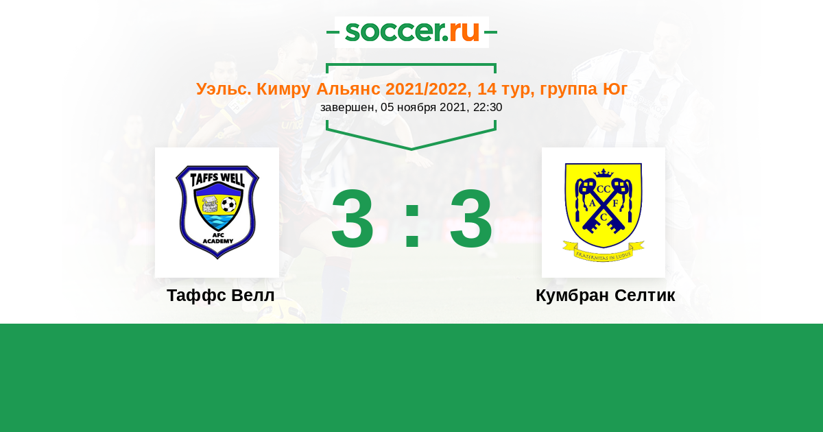 История матча Таффс Велл против Кумбран Селтик