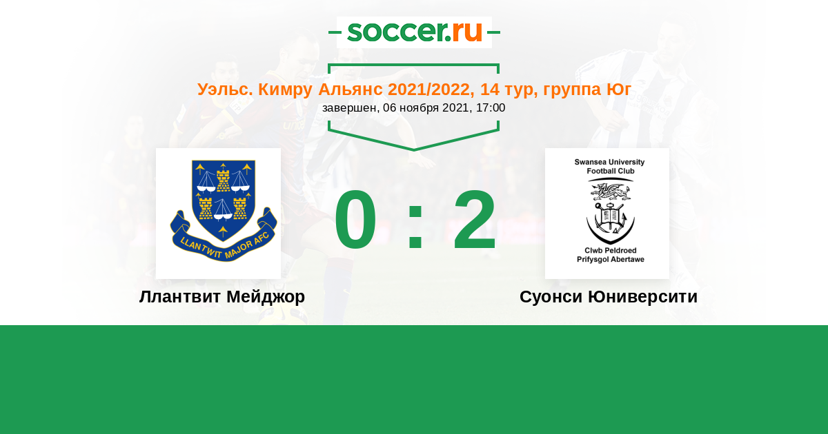История матча Ллантвит Мейджор против Суонси Юниверсити