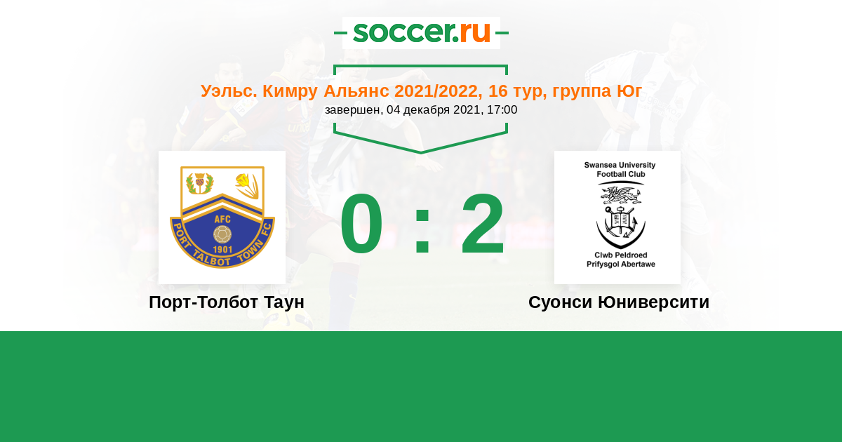 История матча Порт-Толбот Таун против Суонси Юниверсити